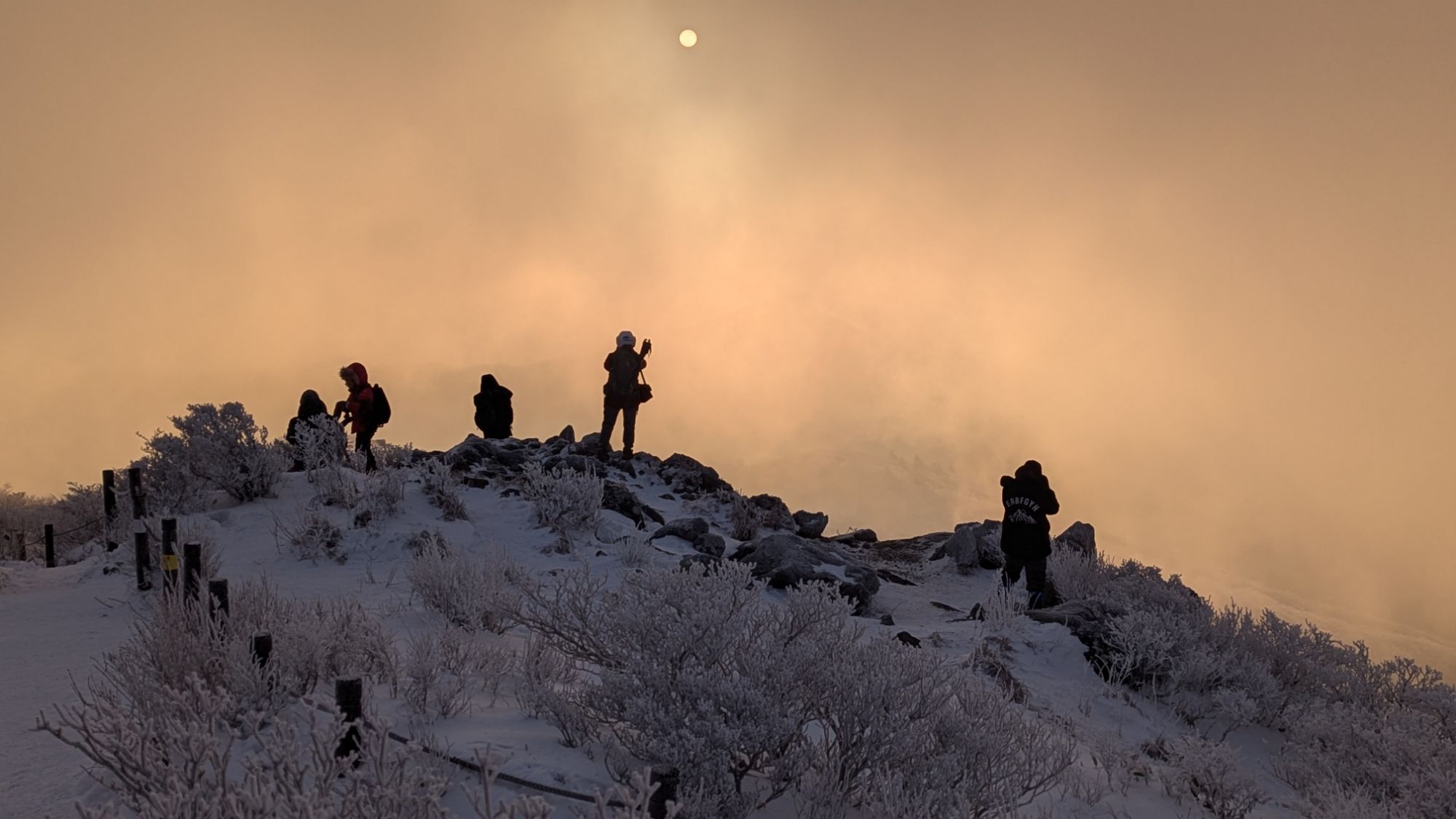 아쉽게도 짙게 낀 안개로 해는 보이지 않았지만, 대신 붉게 물든 지평선을 감상할 수 있었습니다.