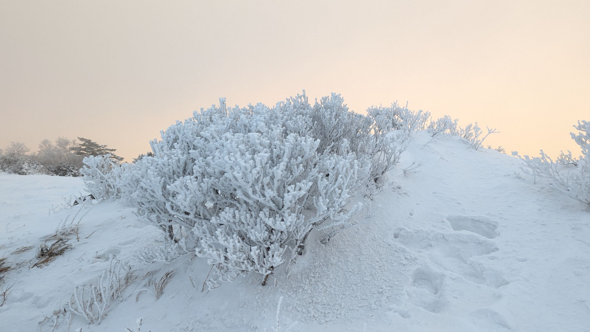 참고로, 하얀 눈을 배경으로 사진을 찍을 때 사진이 조금 어둡게 나오고 회색빛을 띄는 것은 노출이 적어서 발생합니다. 이를 보정하려면 노출을 강제로 더 주어야 하는데, 제가 사용하는 스마트폰은 찍을 때마다 조정해야 해서 손도 시리고 쉽지가 않네요.