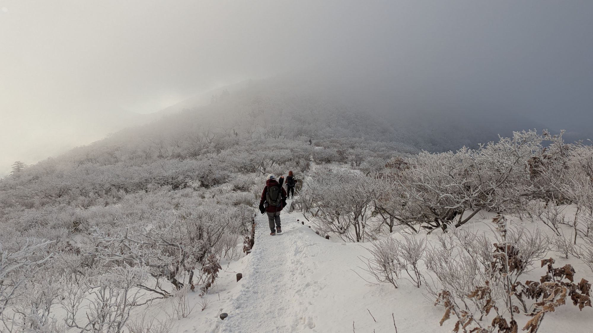 아래 사진은 향적봉에서 안성탐방지원센터까지 가면서 찍은 사진입니다. 가장 멋있던 구간은 중봉에서 동업령까지입니다 특히 중봉 주변의 눈꽃은 사진으로 보는 것보다 아름답습니다. 다만 해가 구름에 가려 나오지 않거나 안개로 인해 빛을 받지 못해 사진보다는 실물이 훨씬 아름답습니다. 오래있고 싶었지만 출발시간이 정해져서 아쉬움을 남기고 하산했습니다.