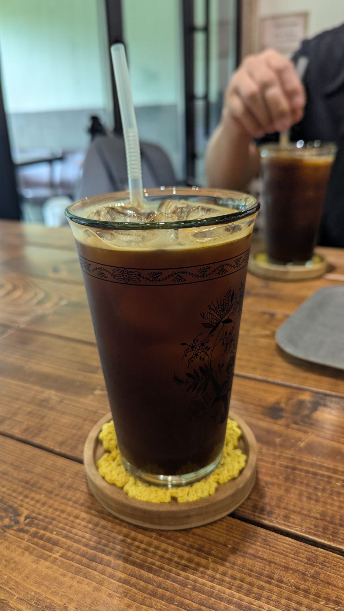 식사를 마치고 커피 한 잔 하고 동서울 버스터미널가는 버스를 기다립니다. 손님이 많지 않다보니 까페 입구에는 옷을 전시하고 리폼도 하는듯합니다. 창문의 뷰가 좋아요 [카페 콩가 https://naver.me/5ZSuaWpX ]