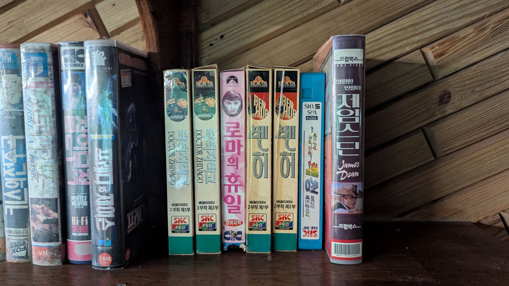 까페를 구경하다가 오래된 VHS비디오 테이브가 있는 로마의 후일, 벤허… 이 테이프를 플레이 할 수 있는 비디어 플레이어가 필요할텐데
