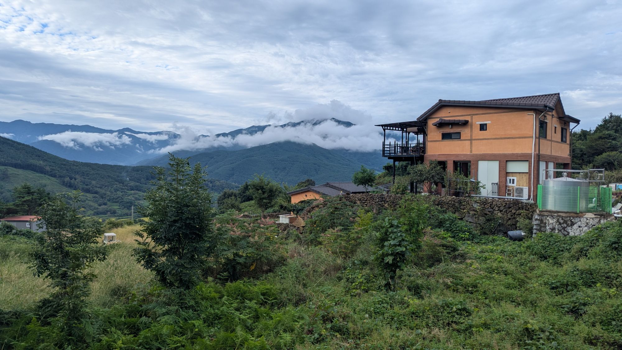 트레킹 중간에 길에 앉아 간식을 먹는 것을 보고 자기네 펜션에 와서 차 한잔 하라고 해서 가본 음악펜션입니다.