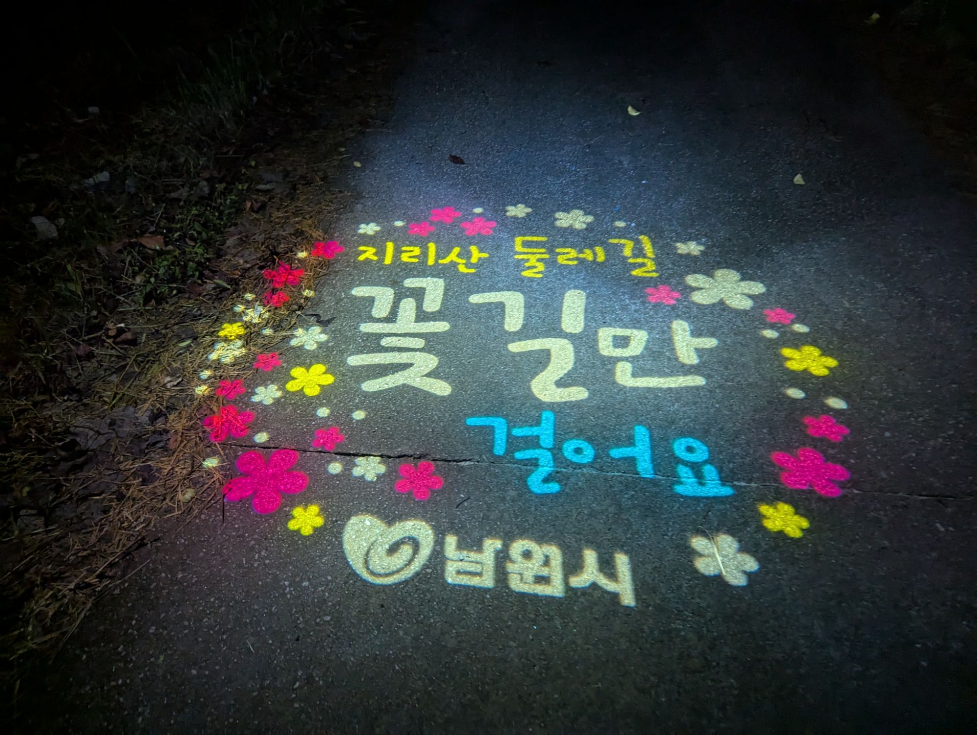 밤길을 위해 바닥에 길 안내 표지가 있습니다.