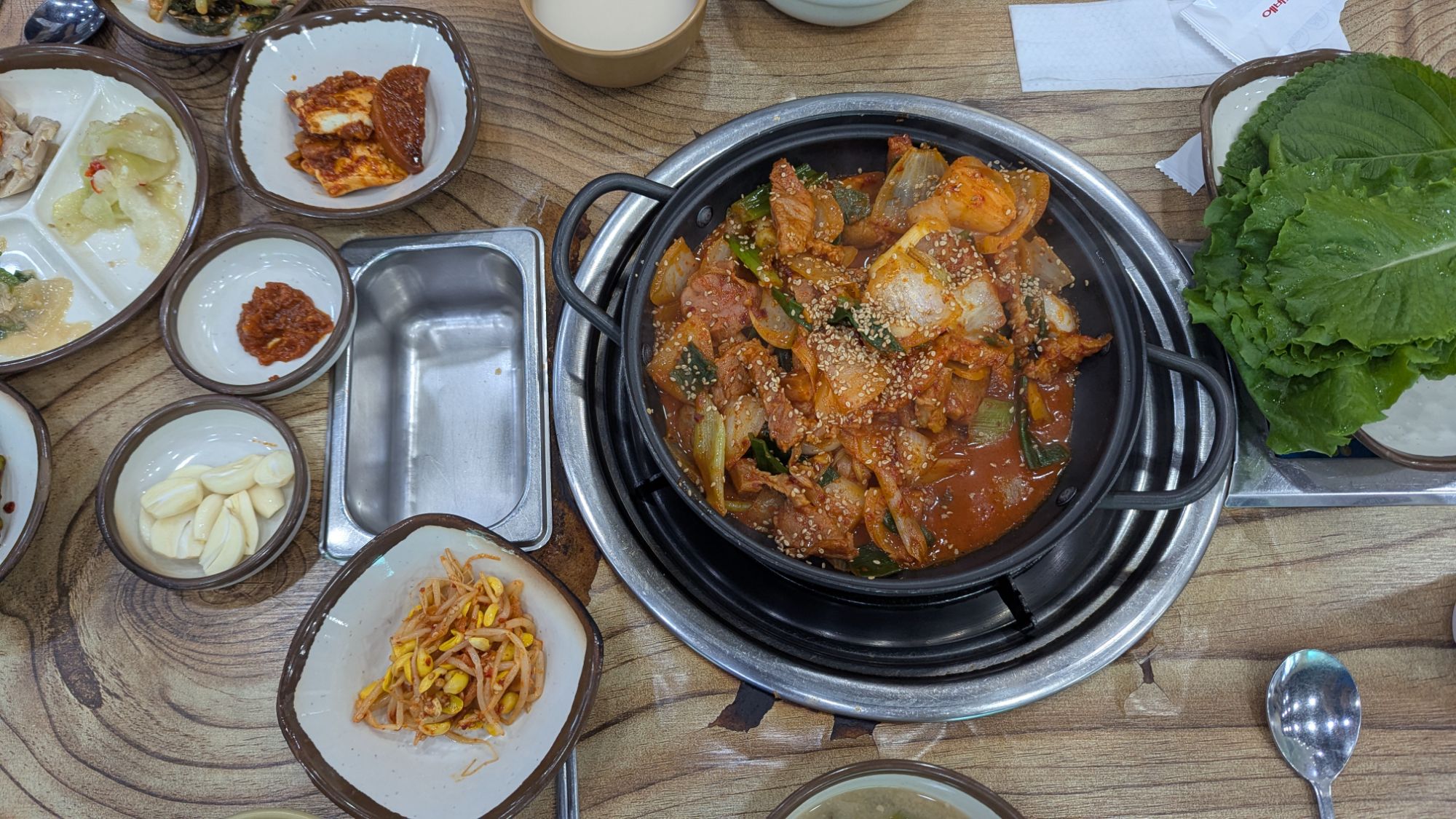 금계에서 택시를 타고 마천으로 이동하여 목욕탕에서 샤워를 한 후에 식사를 합니다. 주변 식당이 흑돼지로 유명한듯합니다. 굽기 싫어서 제육을 주문합니다. 고기 식감이 남다릅니다. [마천흑돼지촌식육점 https://naver.me/xucZK6dl ]