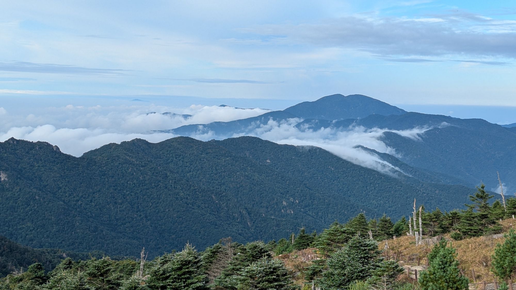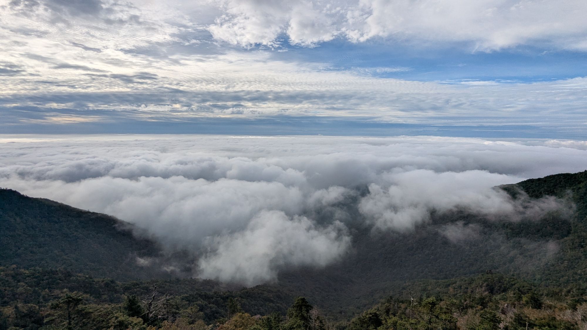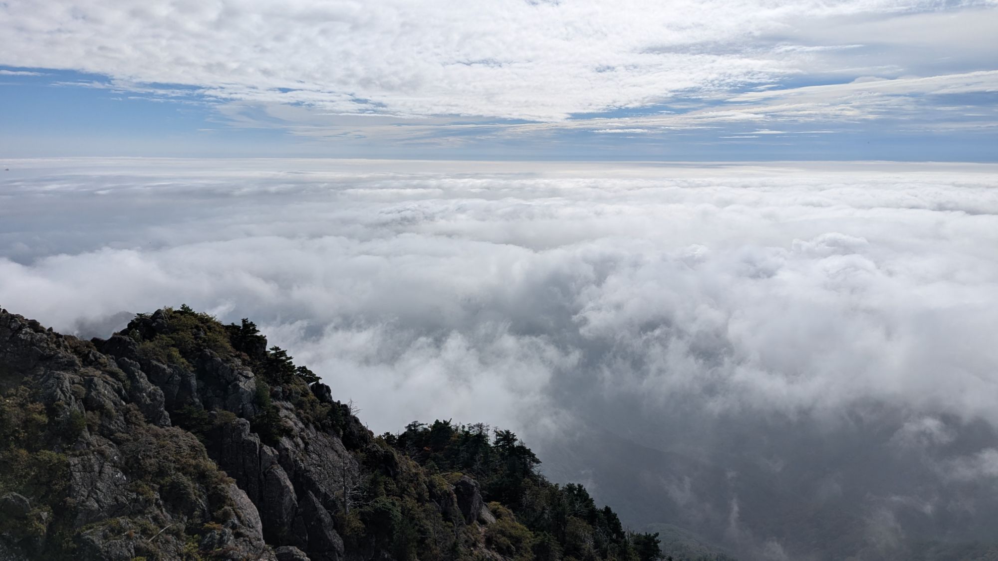 천왕봉에 오르며 찍은 뒷편 모습입니다. 구름위에 떠 있는 느낌