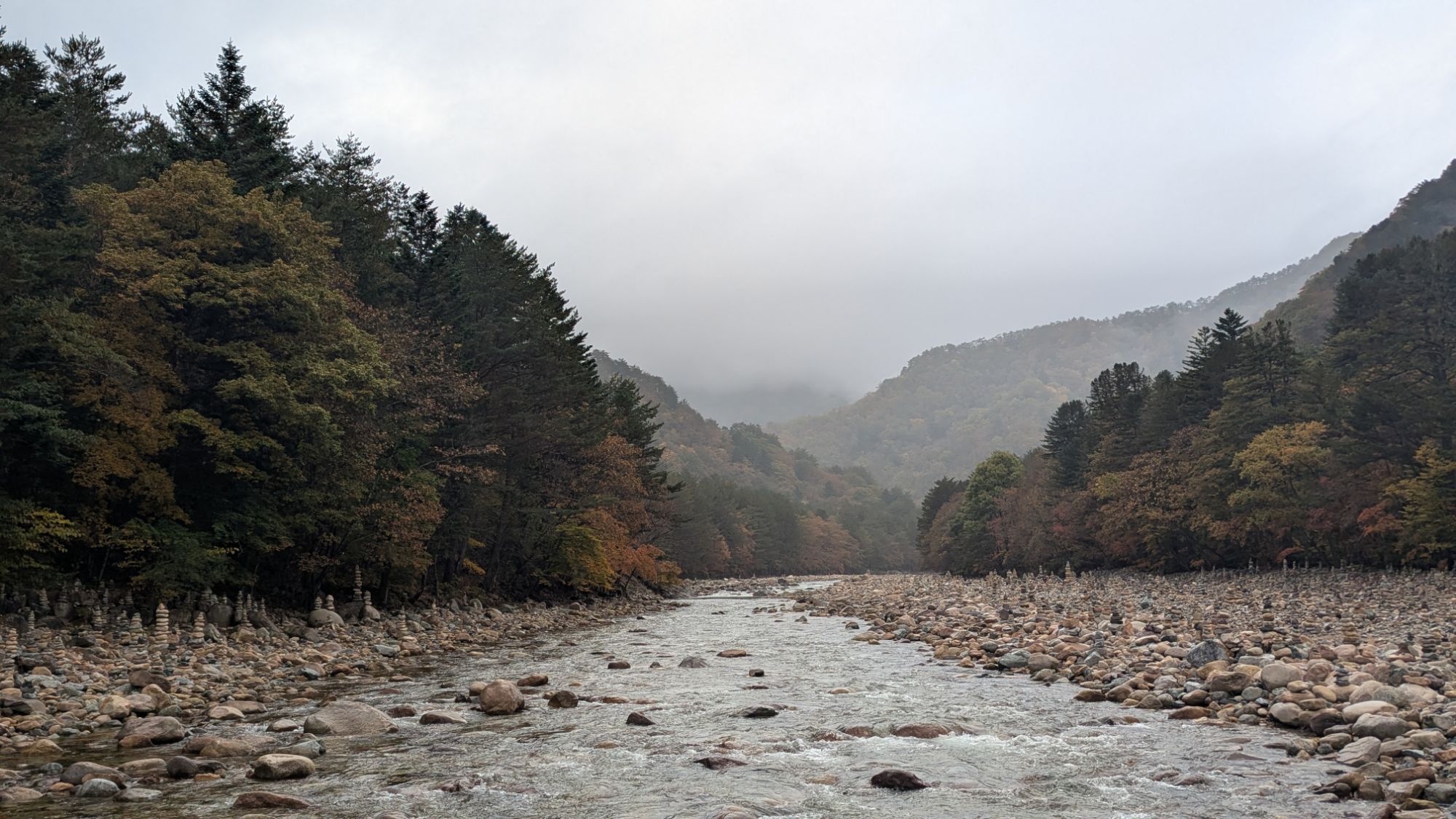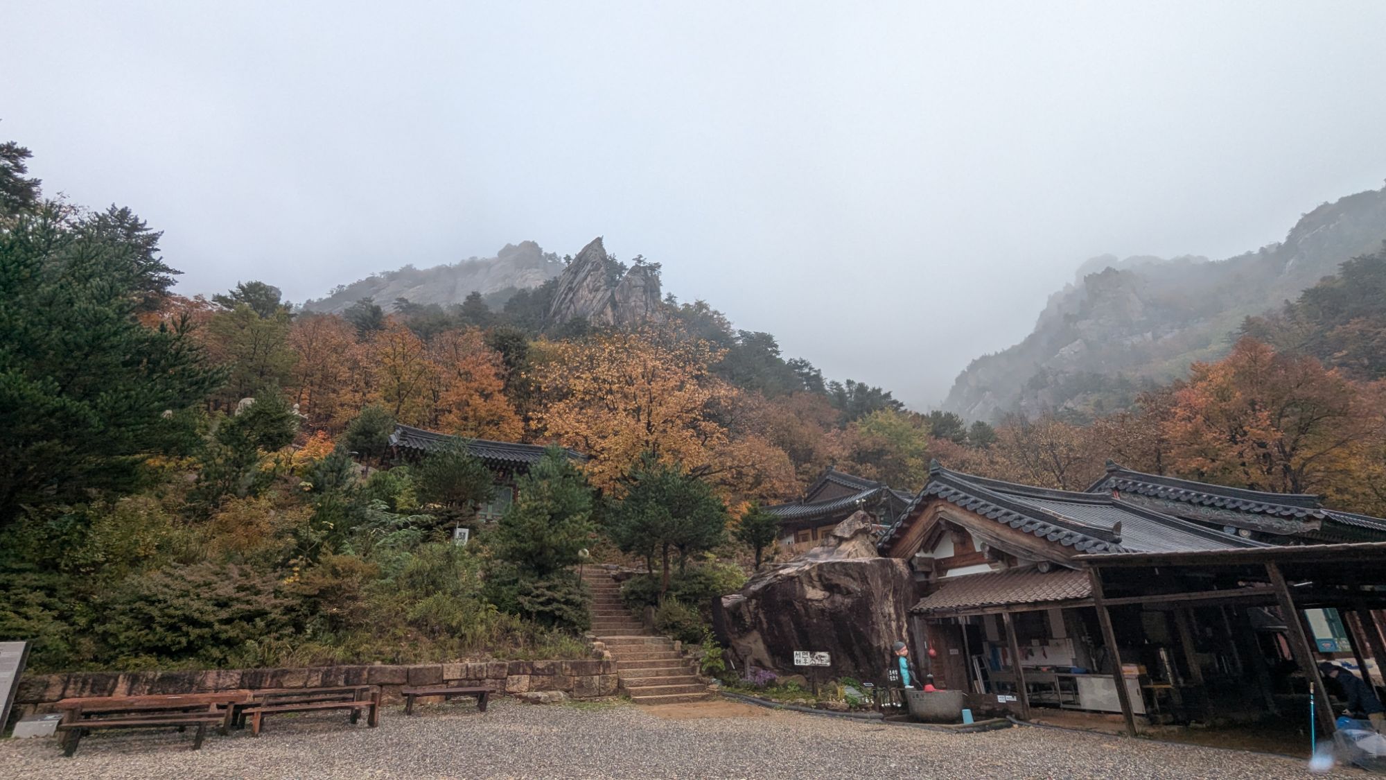 백담사 원점 회귀 산행을 위해 자차로 새벽 4시에 출발했습니다. 다행히 7시 전에 도착했으나 매표소를 찾아 표를 구매하는 동안에 버스가 출발하여 30여분 후에 백담사행 버스를 타게 되었습니다. 버스를 탈 때 이슬비가 부슬부슬 내리기 시작했는데 전날 일기예보 확인시 국내는 비가 없는 것으로 해외예보는 비가 오는 것으로 나와 우비를 준비하려다 깜박하고 시작부터 내리는 이슬비를 어떻게 할까 고민하다 그냥 멀리서 왔으니 산행을 강행했습니다.