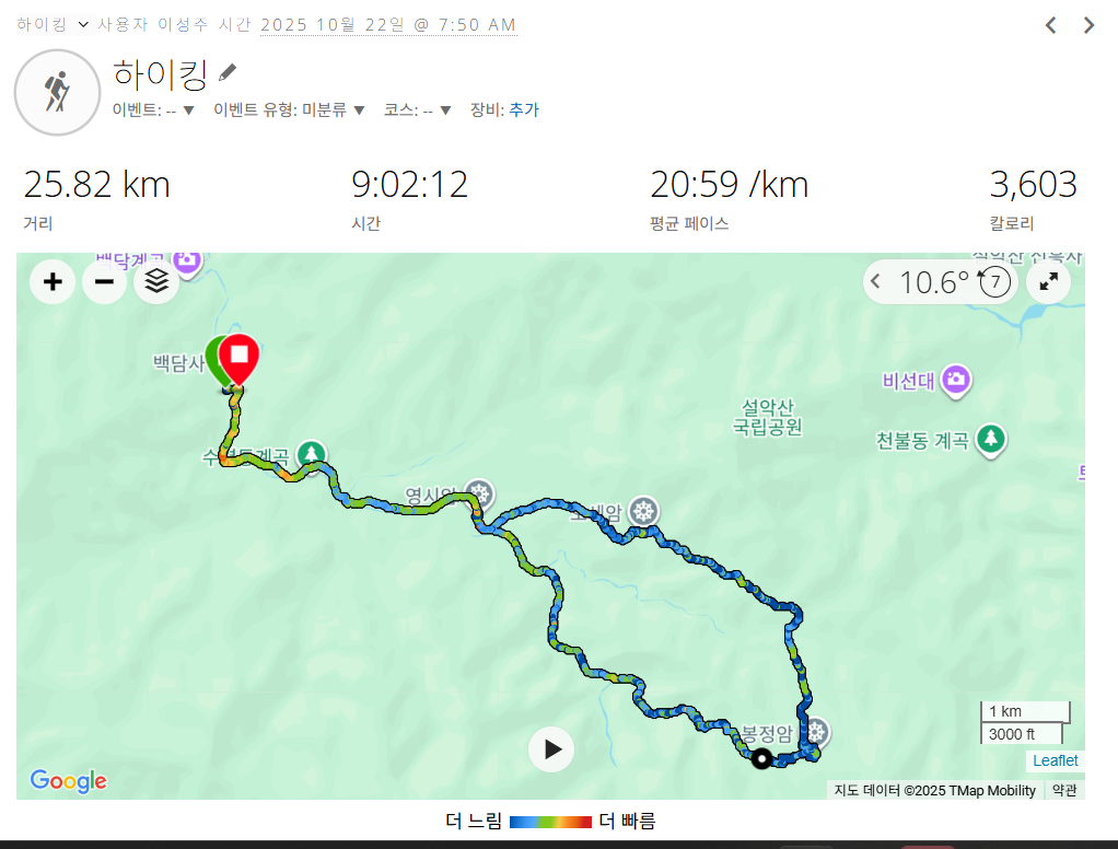 2025년 6월 20일 오족골 골절로 거의 3달을 산행이나 로드자전거를 타지 못하고 6주는 반깁스로 6주는 가벼운 운동(등산이나 자전거는 제외)위주로 지내다가 9월 16일 대학병원 의사가 산행과 골프운동이 가능하다라고 해서 가벼운(?) 트레킹을 준비했습니다.