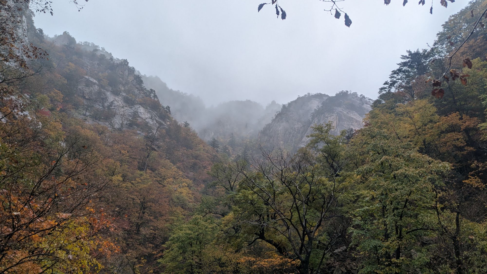 오후 3시에도 이슬비는 계속 내리고 해를 볼 수 없는 산행이었습니다. 매번 산행마다 좋은 날씨일 수는 없지만 아직 단풍의 절정의 시기는 아닌듯합니다. 아쉬지만 내년을 기약하며 집으로 ~~
