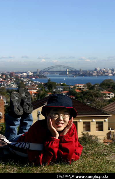 그 자리에서 기념 사진을 한 장찍어 주었는데 전해 주질 못함오페라하우스와 하버브리지를 볼 수 있는 언덕인데.. 이름이 생각이 않나네요 ^^^_^;;