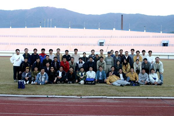 보령운동장에서 축구와 족구게임을 마친 후에 전체가 모여서 기념사진을